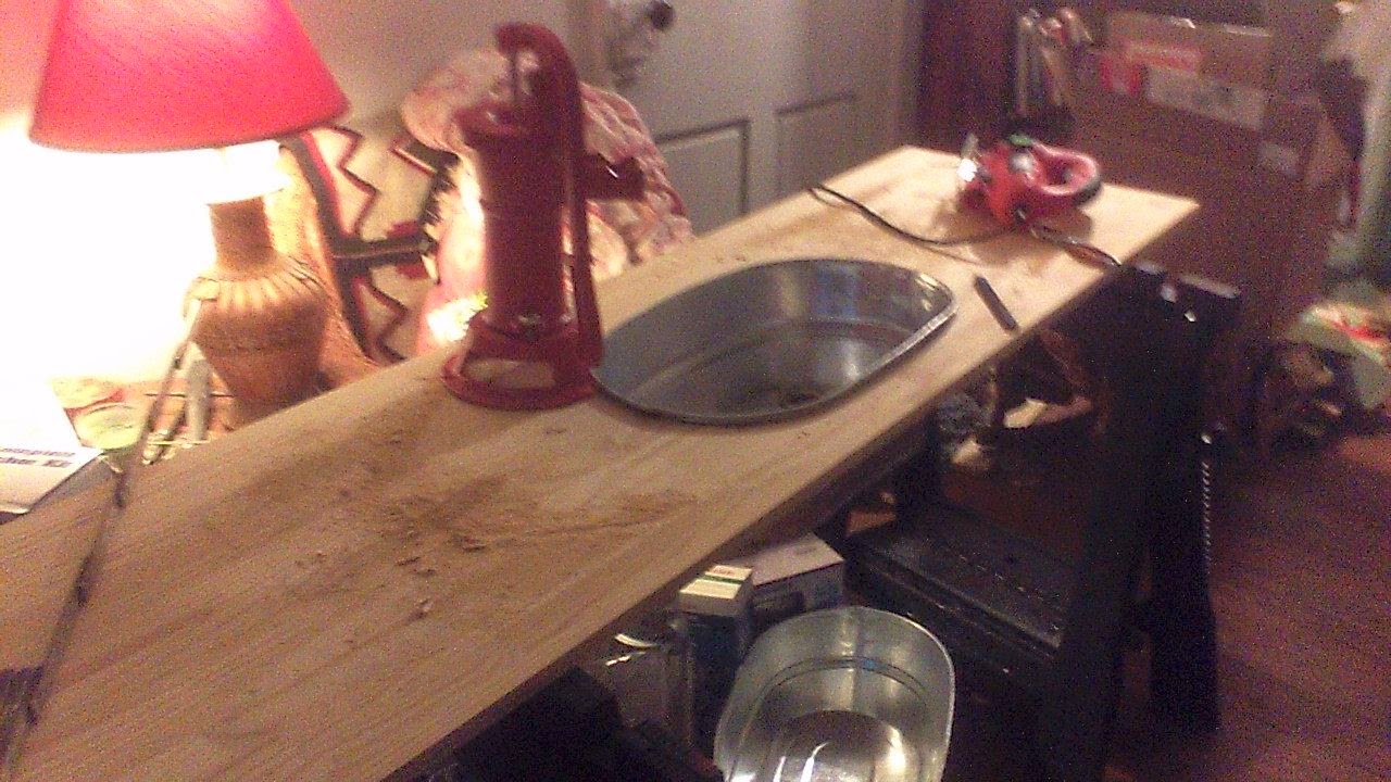 And here's the rough sink and pump in place, sans caulking, oil, sanding...and, well, boat.